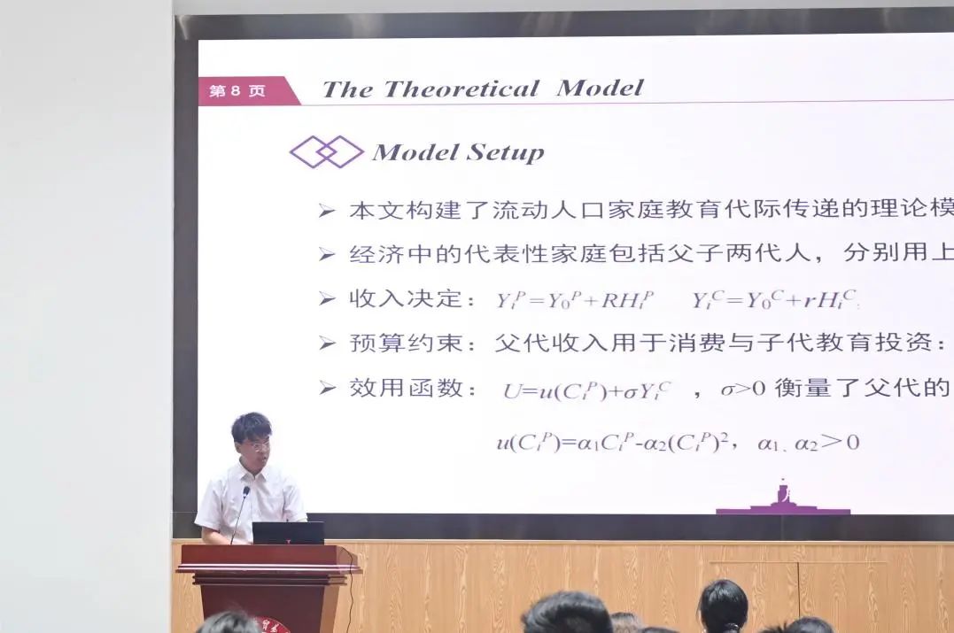 主论坛包括两个部分,第一部分共有四位发言人进行分享。中国人民大学的孙可心同学作题为《不同代际居住距离下中国老年人心理健康的影响因素——基于老年友好型社会的分析框架》的报告,该研究对不同代际居住距离下老年友好型社会建设微观环境对老年人心理健康的影响进行了探究。换妻 的杨艳飞同学以《农业劳动力结构转变对农户劳动参与的影响研究》为题进行分享,该研究考察了我国农业劳动力的基本特征,分析农业劳动力结构转变对农户劳动参与的影响。北京大学盛禾同学汇报的题目是《独生子女更加认同性别平等吗?——基于CFPS的数据分析》,该研究发现独生子女更加认同性别平等观念,独生属性对性别平等观念的影响存在异质性。南开大学范子昂同学以《随迁还是留守:基于教育代际流动性的经验证据》为题进行发言,该研究基于代际流动性的视角,研究子代随迁对教育机会公平的影响。发言人汇报结束后,北京大学刘涛研究员对四位发言人的汇报内容做了精彩点评。
