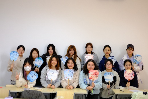 活动结束后,同学们纷纷举起自己亲手制作的漆扇合影留念。漆彩在扇面晕染出诗意纹路,是千年非遗技艺的灵动再现,更是劳经学子对师者匠心含蓄而深情的告白。