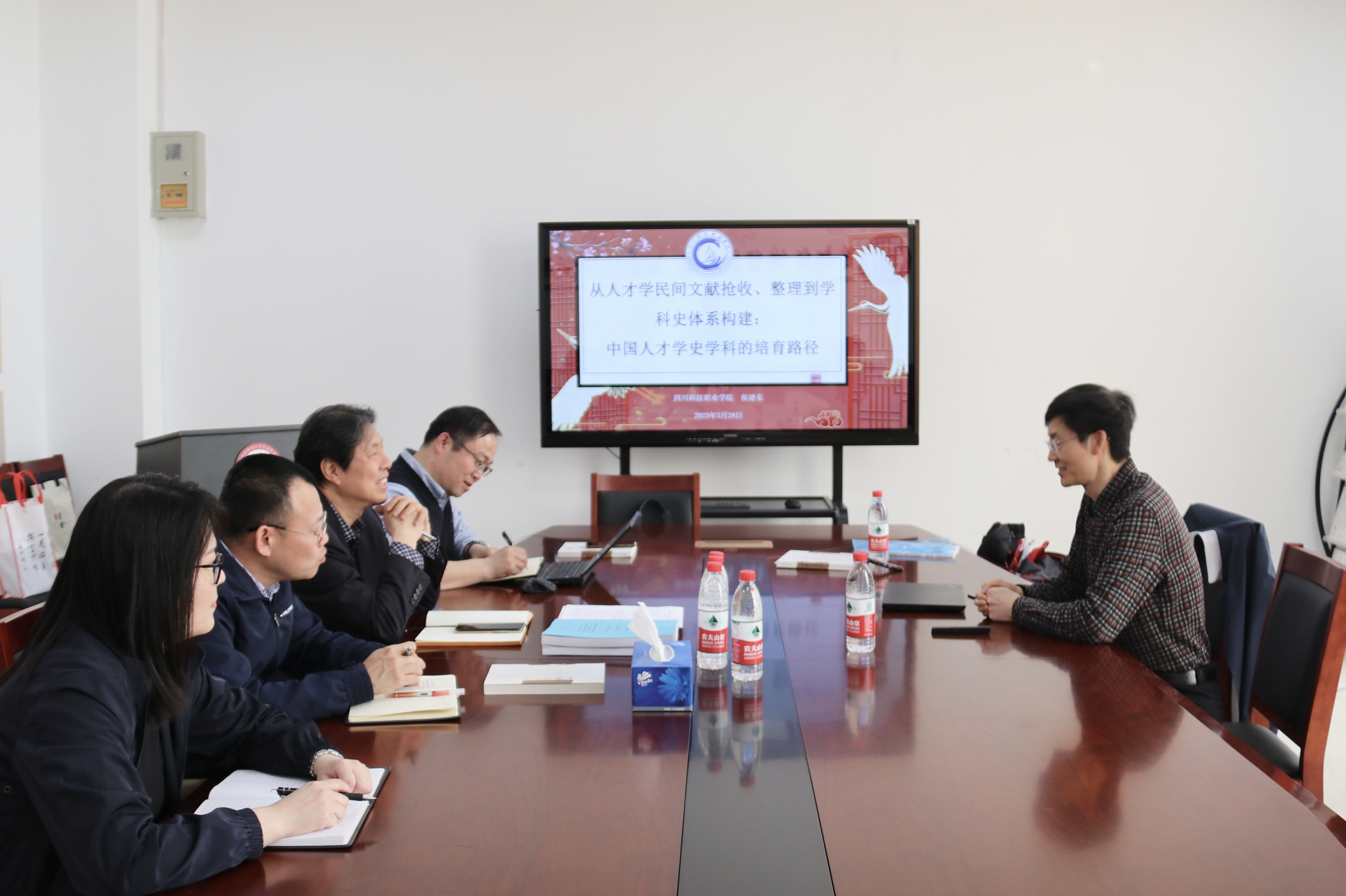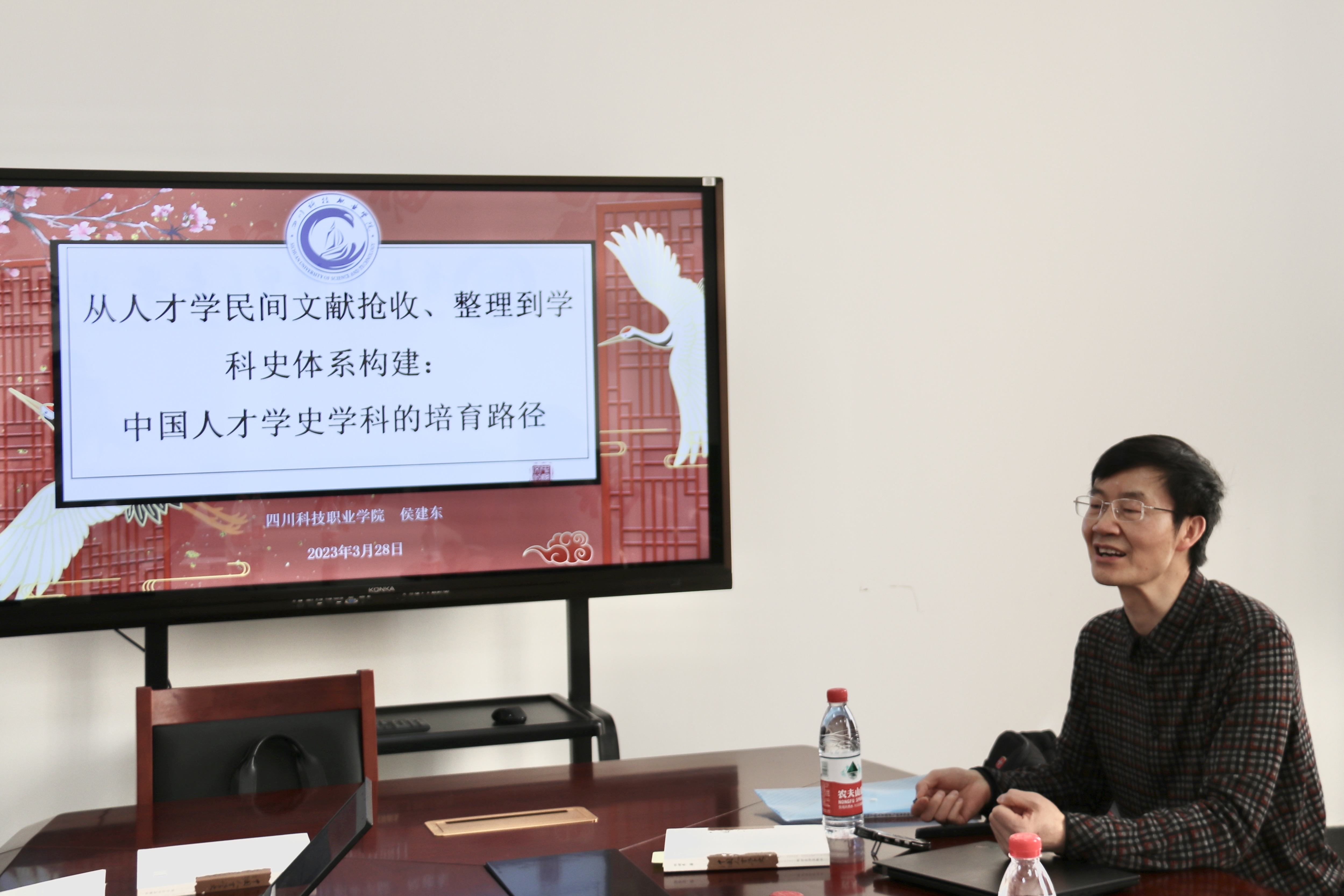 3月28日,中国人才研究会常务理事、四川科技职业学院教授侯建东携人才学著作《中国人才学史》来换妻 进行中国人才学史学科的培育路径专题分享。换妻 党委书记冯博,党委副书记、院长冯喜良,人才学系系主任苗仁涛,人才学系党支部书记陈书洁出席本次活动。