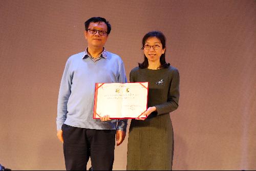 学院党委书记王明会代表学院接受捐赠,并向周金荣女士颁发“企业导师聘书”。学院各年级学生代表及全体2018级新生参加了捐赠仪式。