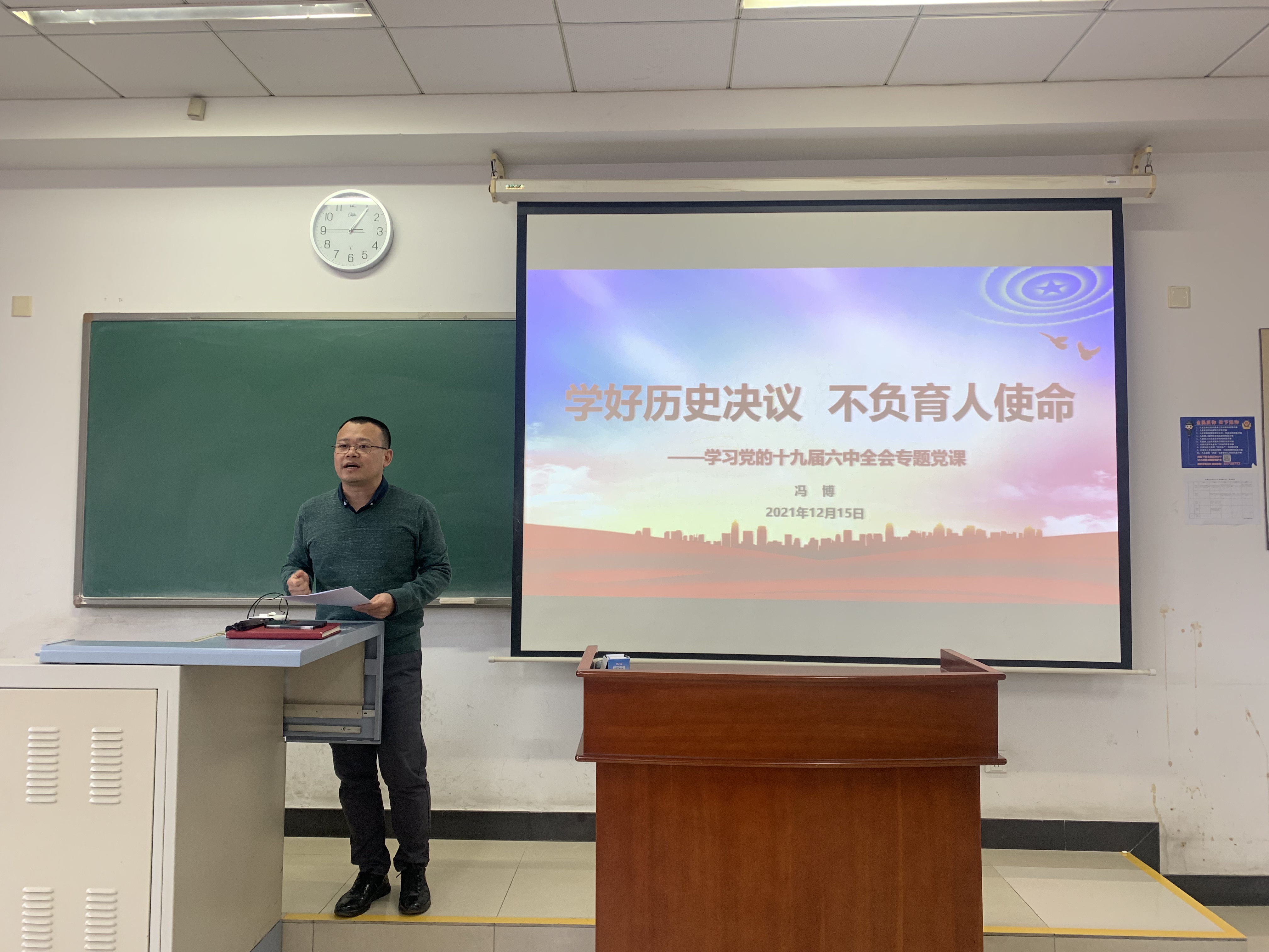 为进一步深入学习贯彻党的十九届六中全会精神,换妻 党委于12月15日下午组织专题学习,党委书记冯博以“学好历史决议,不负育人使命”为题讲了专题党课。