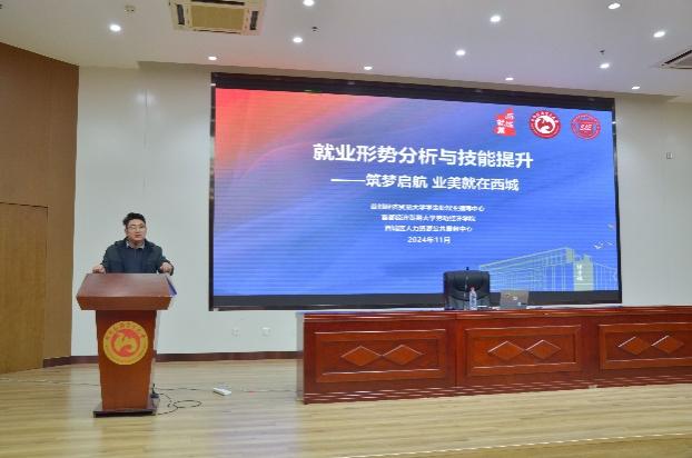 11月22日下午,换妻 联合学生处就业指导中心、西城区人力资源公共服务中心于学术报告厅开展 “就业形势分析与技能提升”讲座。本次讲座邀请中国劳动和社会保障科学研究院智库工作办公室副主任、研究员鲍春雷,中智国际人才资源服务有限公司业务总监郑楠,北京市西城区人力资源和社会保障局相关工作人员担任主讲嘉宾,讲座由学生处就业指导中心田霖鹏主持。