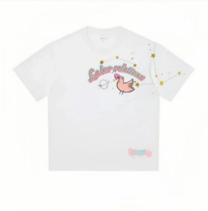 班服:班服正面用英文拼写的“Labor relations”与和平鸽的图案代表劳动关系是世界各地人们相互联系的桥梁和纽带,是一个既有温度又有深度的学科。画面中的星星是希望同学们可以利用各自所学的知识,在未来各个领域和岗位发光发热。右下角学校的缩写体现劳关班同学对学校心怀感恩,始终将学校铭记于心。班服背面印有班徽,代表劳关班同学在未来将团结一致,共创佳绩。和平鸽与小星星的元素与班徽上的元素相呼应,整体色彩使用鲜明活泼,体现出劳关学子阳光向上,积极进取的精神风貌。