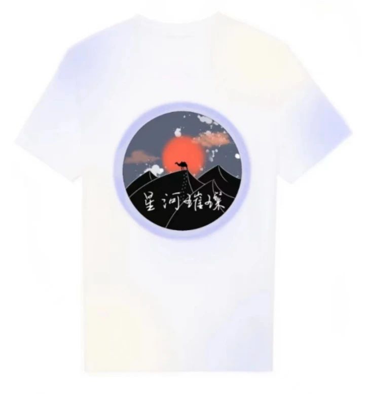 班服:以班徽为主,将班级理念体现在班服上,更凸显集体意识。沙漠中笃行不怠的骆驼,体现的是骆驼精神;红日朝阳,是希望蓬勃,“星河璀璨”,脚踏实地,仰望星空,写梦中所向,书心中之志。在班徽周围有蓝黄渐变加以点缀,有山水风韵,更有中国古典元素,与中国文化相结合,典雅朴素。
