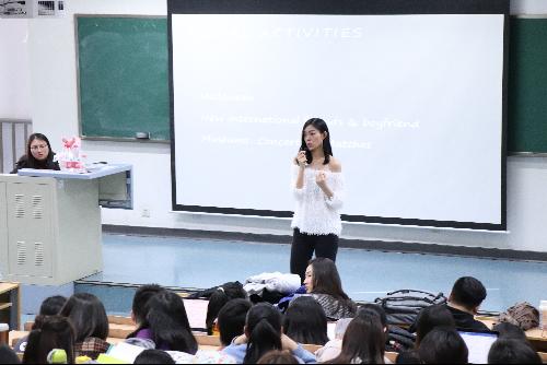 首先,孙小乔学姐在出国留学方面为大家讲解了自身的丰富经验。她分别从社交娱乐、学校生活两个方面入手,带领我们了解了她留美时期的学习生涯,也让我们知道了出国留学所需要的基本条件。国外的生活很精彩,但同时国外的学业也很繁忙,她告诉我们,国外拥有与国内大不相同的人文风情,更有国内体验不到的社交生活,若是有条件的话一定要去体验一番。