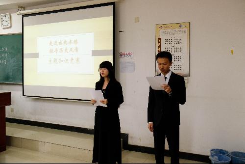 11月28日下午,换妻 于博学楼608教室开展了以“走进古北水镇,探寻历史风情”为主题的传统文化知识竞赛。本次竞赛旨在引导大学生走出校园,纵览古镇名城的壮丽美景,感悟中华文化的博大精深,对提高大学生对中华传统文化的重视程度、展现当代大学生的文化素养与知识积累有重要意义。本次竞赛由18级人实班辛嘉怡和18级社保班邢越主持。