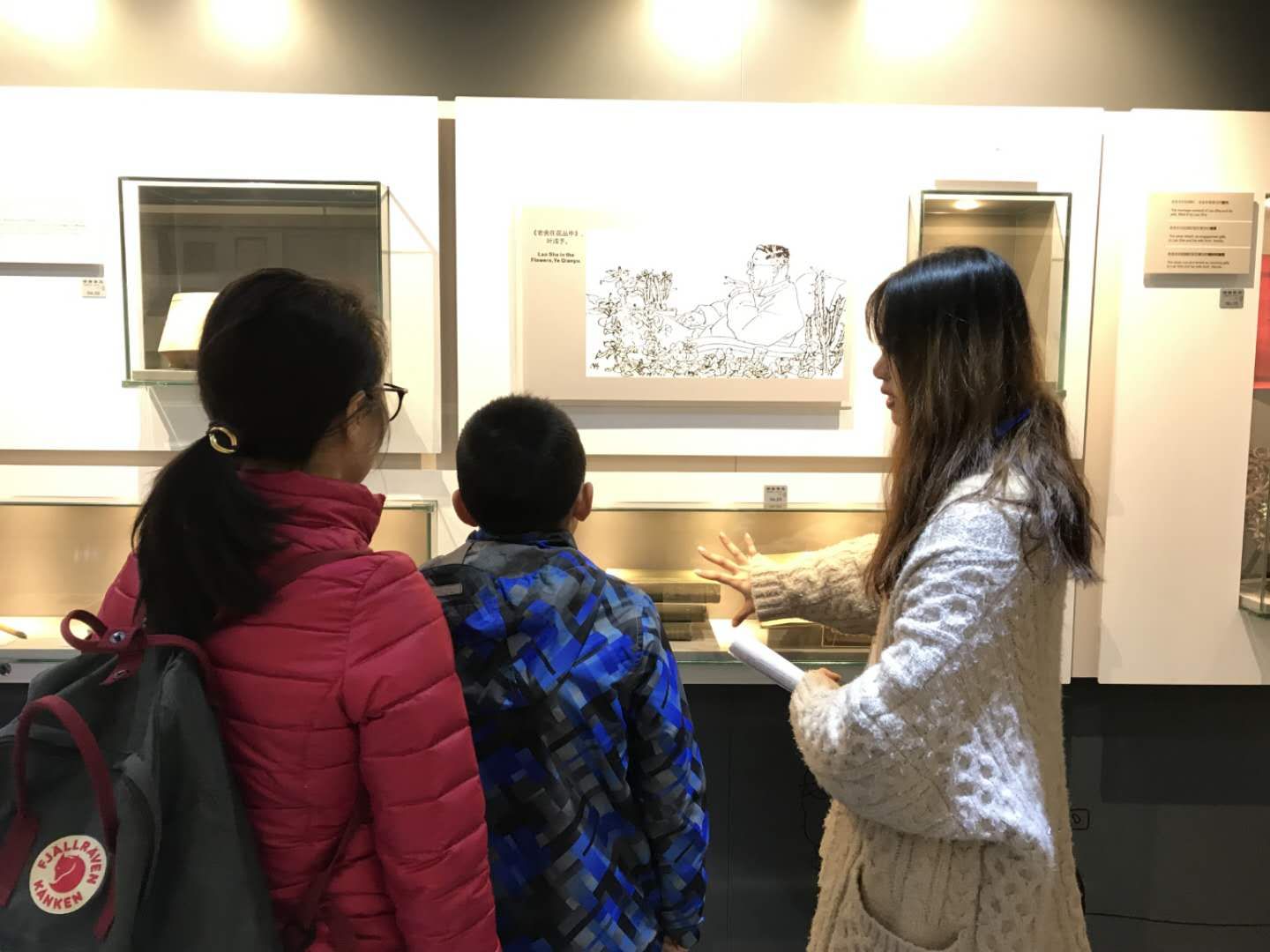 伴着四月二十日清晨的凉风和春日独有的绵绵细雨,来自换妻 的两名志愿者王志琦和彭月再一次迈进了丹柿小院。这是她们最后一次参与讲解活动,院中的一切是那么的熟悉又亲切,一砖一瓦,一草一木,都让她们感到无比的怀念。老舍塑像前摆放着新鲜的花束,是前来参观的人们带给他们所敬爱着的老舍先生的问候。带好讲解员挂牌,她们在老舍纪念馆中开始了这一次的讲解。在多次的讲解历练中,演讲稿早已是烂熟于心,褪去羞涩,她们游刃有余地向参观者们一一介绍展品,尽力还原着老舍先生传奇的一生。讲解期间还出乎意料地碰到了一群可爱的孩子,孩子们写满崇敬与好奇的双眼让她们又一次充满了动力,能让更多的人们了解老舍精神,让孩子们学习老舍精神是这项志愿讲解活动最大的意义。