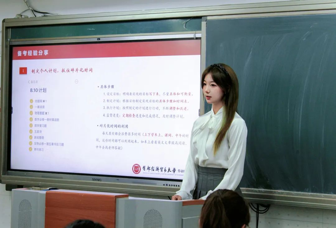 战墨菡为同学们带来备考经验分享,分别从制定个人计划,抓住碎片时间;夯实基础知识,紧抓考试重点;做好错题整理,保证复习效率三个方面出发,并结合个人事例向同学们分享自己的备考经验。讲解的内容干货满满轻松易懂,同时还和大家分享了不少做题小技巧,同学们在交流过程中全神贯注并对分享的内容感同身受,表示十分受用。